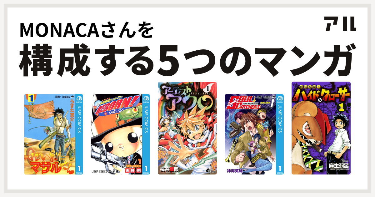 Monacaさんを構成するマンガはセクシーコマンドー外伝 すごいよ マサルさん 家庭教師ヒットマンreborn アーティストアクロ Soul Catcher S 呪法解禁ハイド クローサー 私を構成する5つのマンガ アル
